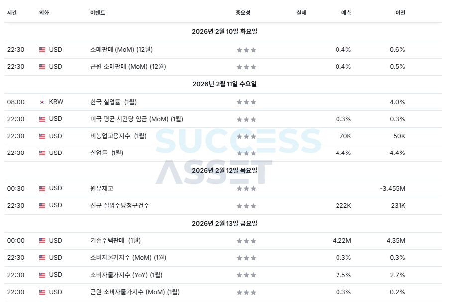2월 2주차 주요지표발표일정