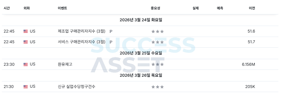 3월 4주차 주요지표발표일정