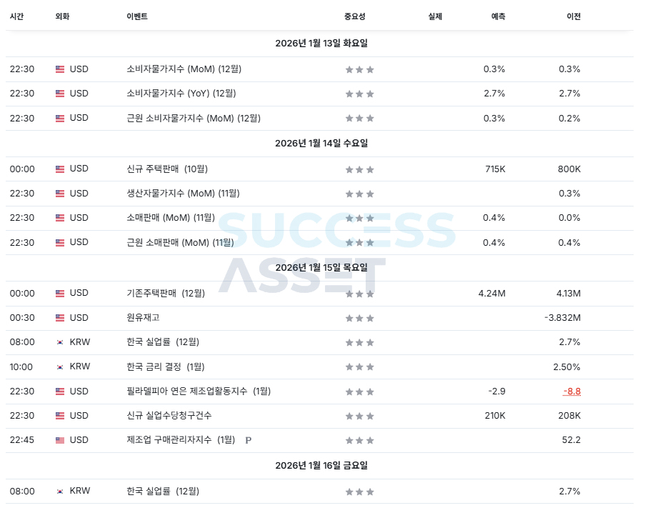 1월 2주차 주요지표발표일정