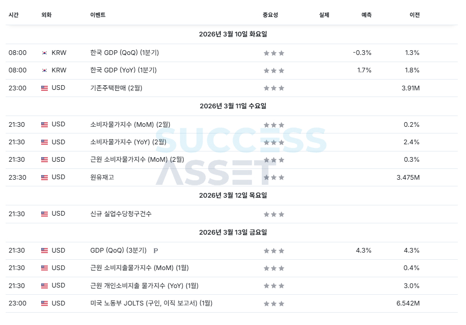 3월 2주차 주요지표발표일정