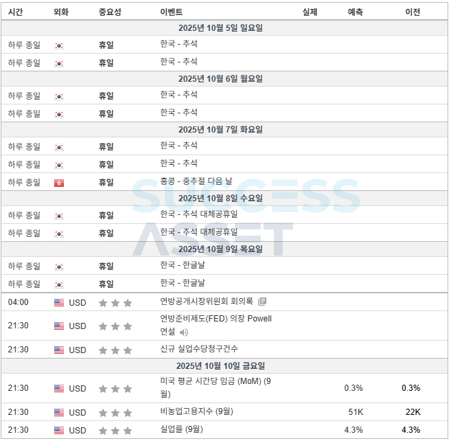 10월 2주차 주요지표발표일정