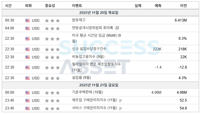 11월 3주차 주요지표발표일정